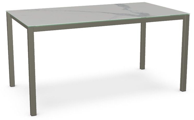 Italian porcelain on glass tabletop with a Statuario marble finish.