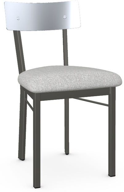 Upholstered seat and stainless steel backrest.