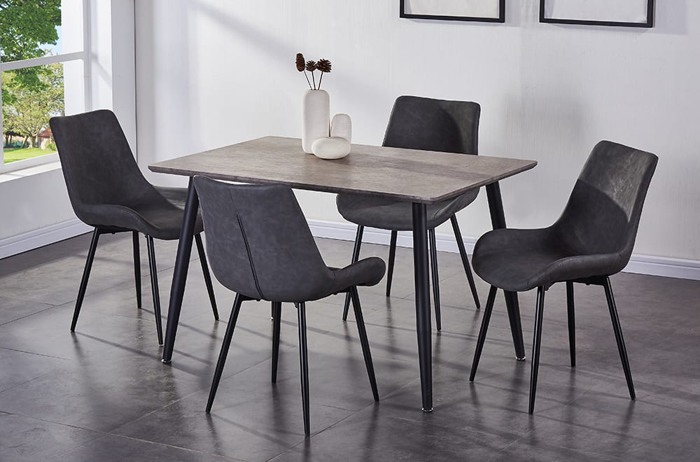 This modern design dining set is sure to impress with its concrete look table top and sturdy metal legs.Read More