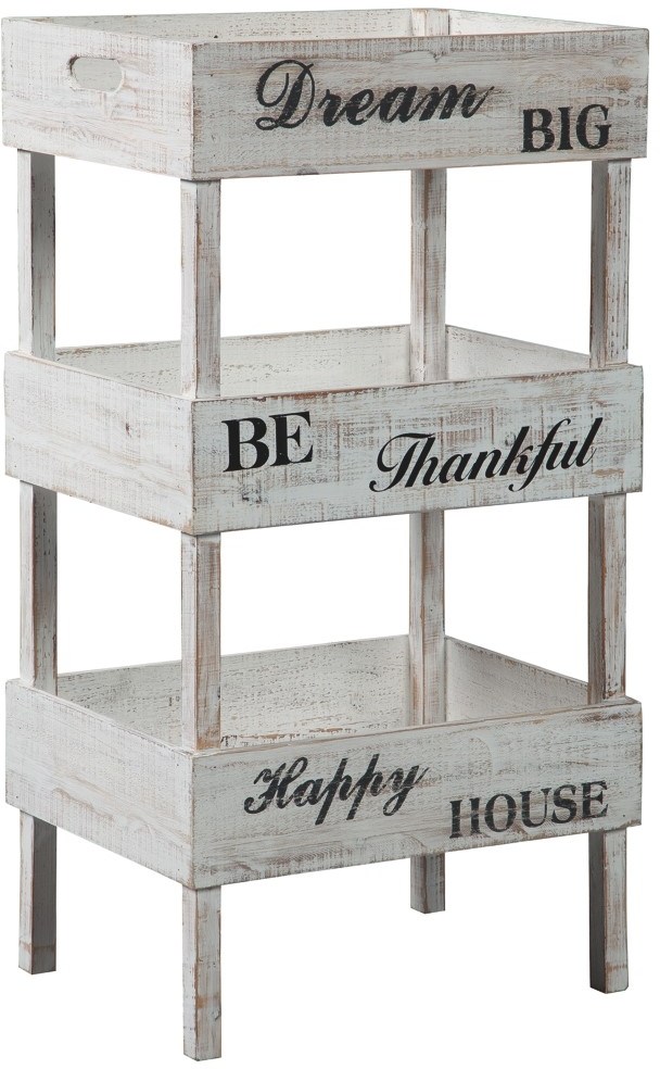 Whether your design sensibility is country cottage or modern farmhouse, this wood storage shelf is a très chic choice for the kitchen and beyond. Gently distressed finish gives this tray-style shelf that sense of yesteryear simplicity we all crave.